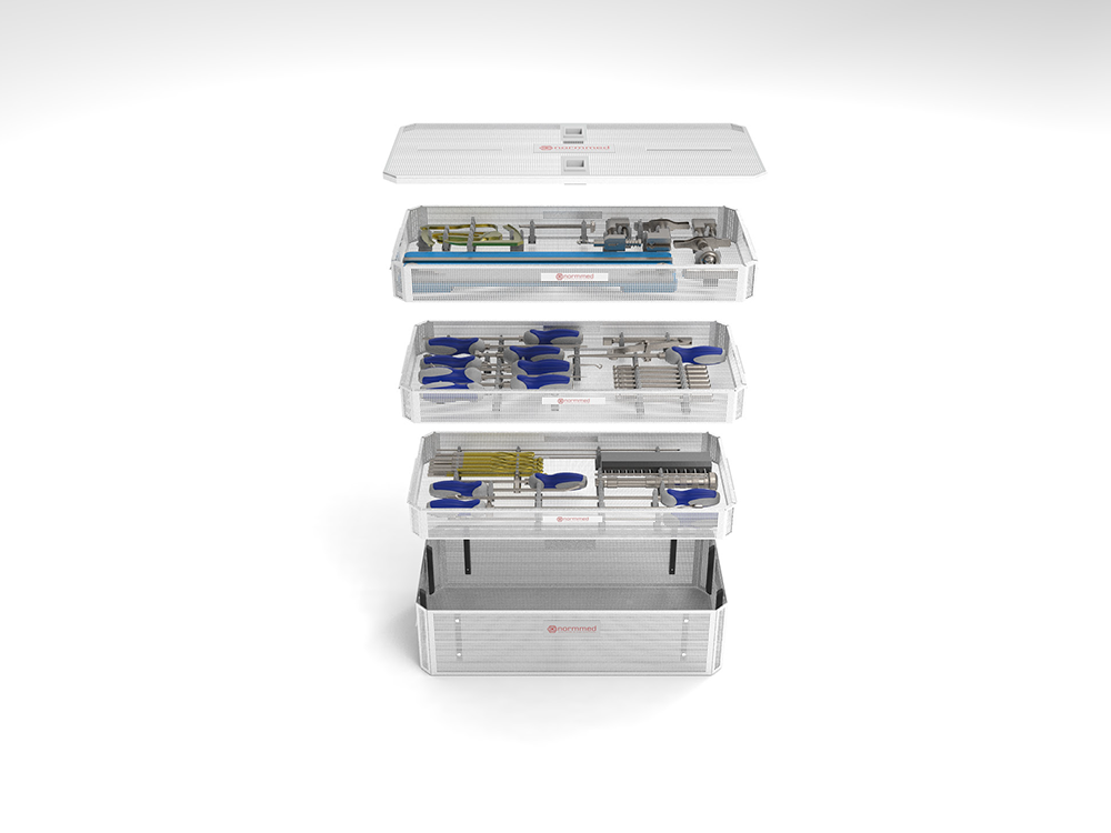 This container is made of wiremesh stainless steel. It has a high stability, low weight and good sterilization feature.